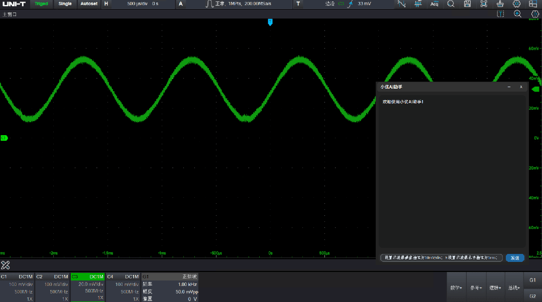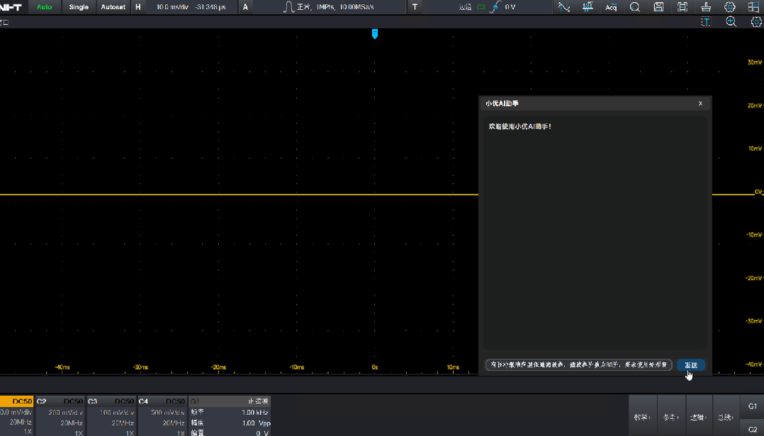用戶可通過文本對話指揮“小優(yōu)AI助手”配置示波器
