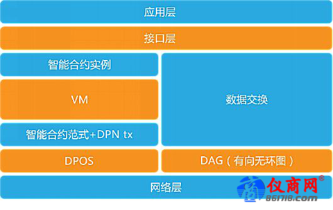 其主要實(shí)現(xiàn)交易數(shù)據(jù)、區(qū)塊生成、維護(hù)共識(shí)等功能。工業(yè)區(qū)塊鏈(DIPNET) 采用DPOS共識(shí)的鏈?zhǔn)絽^(qū)塊結(jié)構(gòu),后期隨著交易數(shù)量增加,最終同時(shí)支持 DAG 實(shí)現(xiàn),將與支付無關(guān)的數(shù)據(jù)交互轉(zhuǎn)移至 DAG 子鏈,并對(duì) IOT 大規(guī)模數(shù)據(jù)提供底層支持。