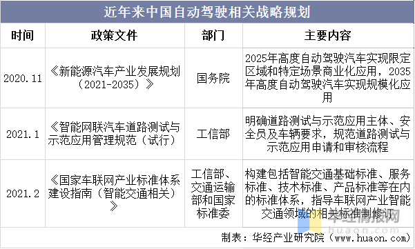 近年來(lái)中國(guó)自動(dòng)駕駛相關(guān)戰(zhàn)略規(guī)劃