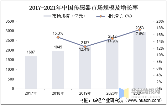 2017-2021年中國(guó)傳感器市場(chǎng)規(guī)模及增長(zhǎng)率