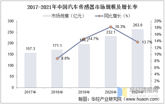 2017-2021年中國(guó)汽車傳感器市場(chǎng)規(guī)模及增長(zhǎng)率