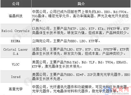 激光晶體領(lǐng)域主要參與者統(tǒng)計情況