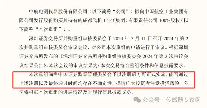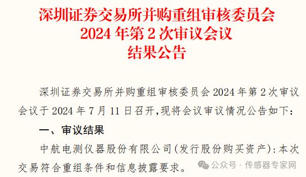 據(jù)傳感器專家網獲悉,昨日(7月11日)晚些時候,深圳證券交易所發(fā)布《深圳證券交易所并購重組審核委員會2024年第2次審議會議結果公告》,公告事件涉及備受市場關注的中航電測發(fā)行股份購買成都飛機工業(yè)(集團)有限責任公司(以下簡稱“成飛集團”)100%股份事項,獲深交所并購重組委審核通過。