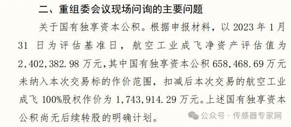 據(jù)深交所公告顯示,航空工業(yè)成飛凈資產評估值為2,402,382.98萬元,其中國有獨享資本公積658,468.69萬元未納入本次交易標的作價范圍,扣減后本次交易的航空工業(yè)成飛100%股權作價為1,743,914.29萬元。