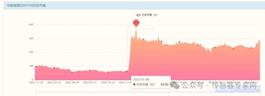 截止2024年7月12日收盤,中航電測報47.96元每股,總市值達283.33億元,而在2023年1月份,中航電測市值長期徘徊在60億元左右。