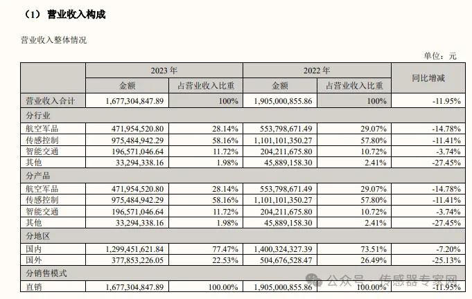 中航電測是上市國產軍工傳感器龍頭企業(yè),據(jù)年度報告介紹,中航電測目前業(yè)務和產品主要涉及飛機測控產品、配電類產品、吊掛投放系統(tǒng)、電阻應變計、應變式傳感器、稱重儀表和軟件、智能傳感器、消費電子領域產品、智能物流裝備、工業(yè)稱重控制、智能倉儲、在用車檢測、特種車輛檢測、智能駕培、智能交通信息系統(tǒng)、ZOS管理軟件、電磁閥等多個方向及領域,按照業(yè)務屬性劃分為航空軍品、傳感控制、智能交通等業(yè)務板塊。