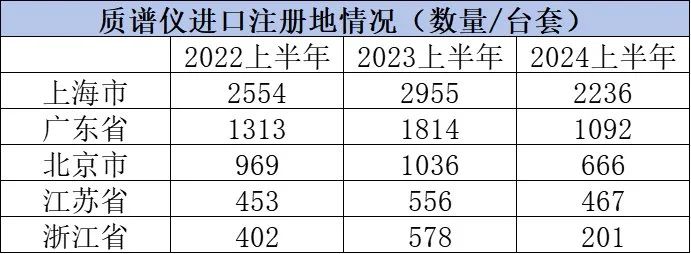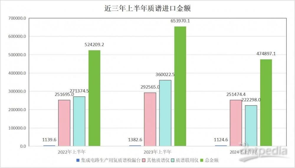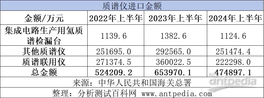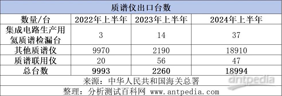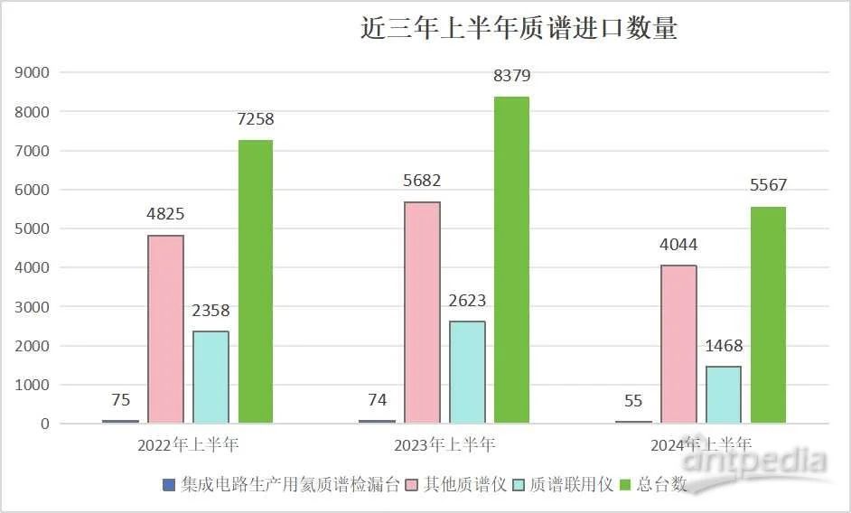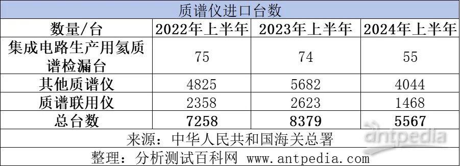 其他質(zhì)譜儀:數(shù)量從2022年上半年的4825臺(tái)增加到2023年上半年的5682臺(tái),在2024年上半年又下降至4044臺(tái)。
