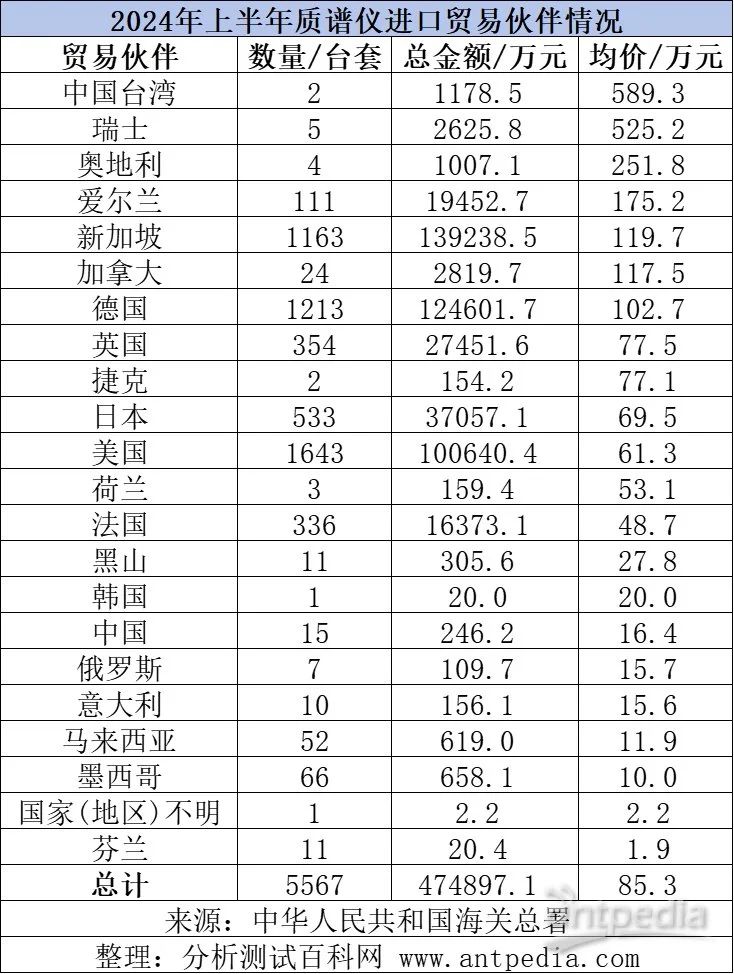 看2024年質(zhì)譜進(jìn)口貿(mào)易地區(qū)的進(jìn)口總金額