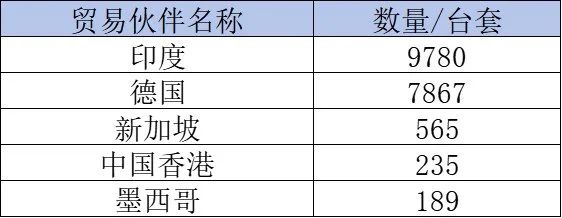 2024年上半年質(zhì)譜出口18994臺(tái)套,數(shù)量前五的有印度9780臺(tái)套,德國(guó)7867臺(tái)套,新加坡565臺(tái)套,銷(xiāo)往中國(guó)香港235臺(tái)套,墨西哥189臺(tái)套。