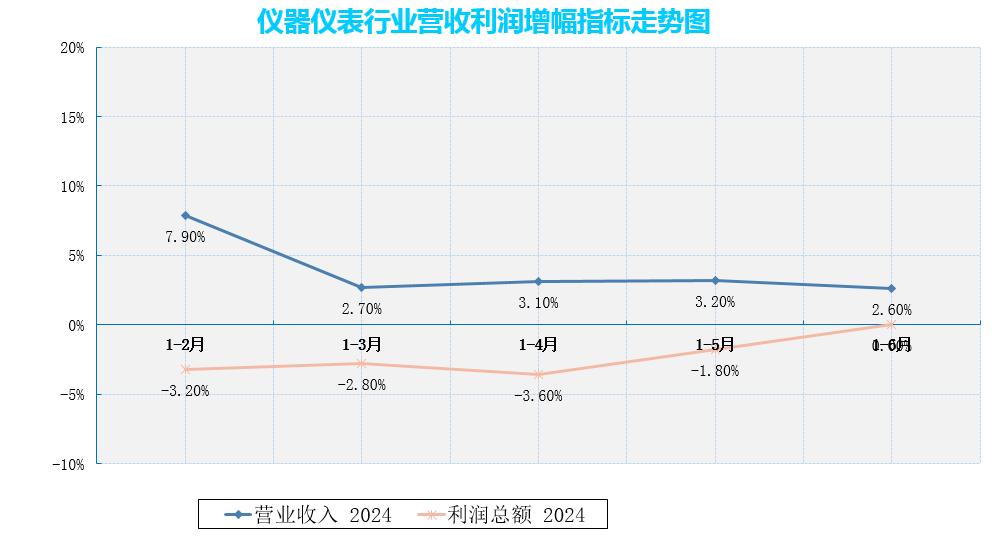 27日,國家統(tǒng)計局發(fā)布最新數(shù)據(jù),1—6月份,儀器儀表制造業(yè)營業(yè)收入4698.9億元,同比增長2.6%,實現(xiàn)利潤總額447.4億元,同比“零增長”(1-5月利潤總額同比增幅為-1.8%)。