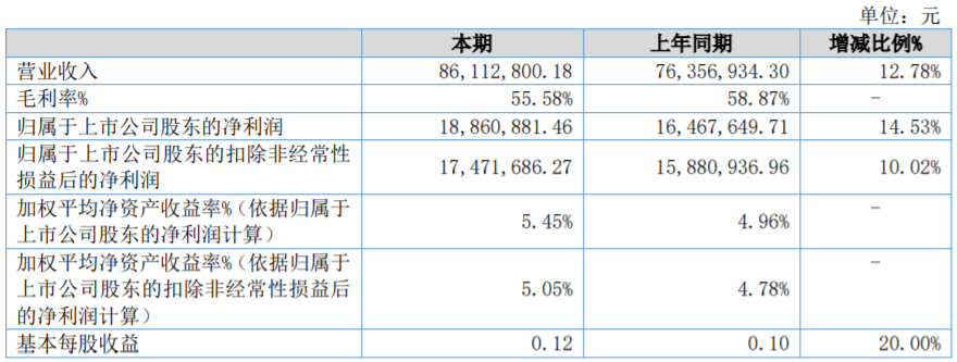 根據(jù)半年報(bào),同惠電子第二季度實(shí)現(xiàn)營業(yè)總收入5454.63萬元,同比增長14.10%;歸母凈利潤1445.75萬元,同比增長12.69%。