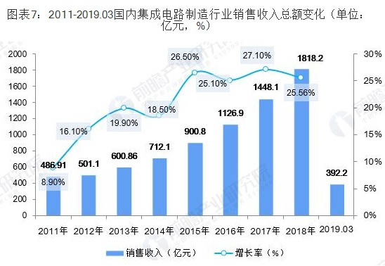 集成電路制造領(lǐng)域則屬于重資產(chǎn),集成電路制造技術(shù)含量高,資本投入大。中國臺灣、美國、韓國的企業(yè)處于領(lǐng)先地位。國內(nèi)龍頭目前落后世界領(lǐng)先水平工藝兩代以上,大約10年時間。2016-2019年來,制造領(lǐng)域保持著25%以上增速。
