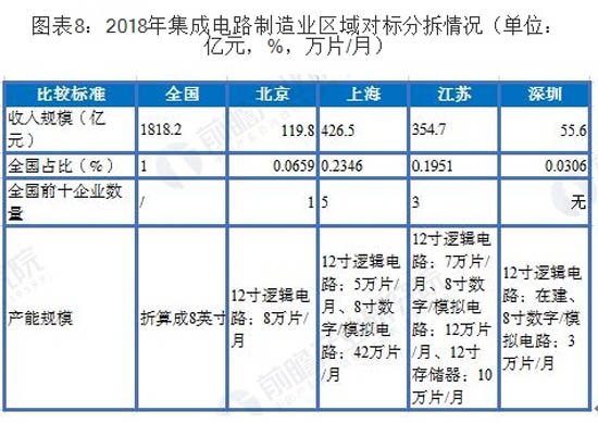 區(qū)域上看,截至2018年年底,我國大陸地區(qū)正在運營的晶圓生產(chǎn)線有100余條,其中12英寸晶圓生產(chǎn)線共13條,8英寸晶圓生產(chǎn)線共23條,6英寸晶圓生產(chǎn)線共50余條。從全國集成電路制造產(chǎn)業(yè)資源分布總體來看,集成電路制造生產(chǎn)線主要分布在東部沿海地區(qū),長三角地區(qū)是集成電路制造生產(chǎn)線數(shù)量最多的聚集。