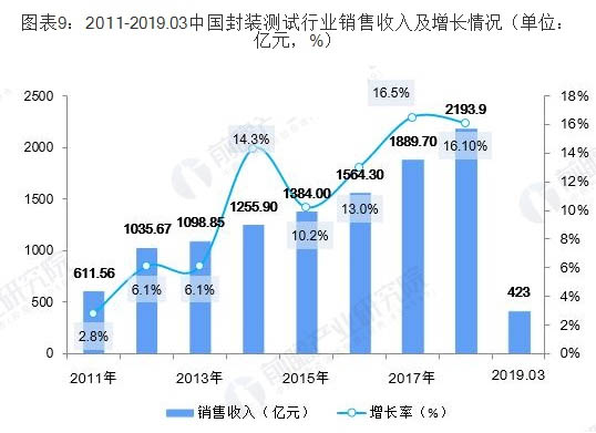 而集成電路封裝行業(yè)則屬于輕資產(chǎn),屬于產(chǎn)業(yè)下游,目前國內(nèi)封測領(lǐng)域已經(jīng)處于世界第一梯隊。2016-2019年來,封裝測試領(lǐng)域保持則15%以上增速。