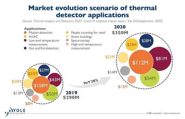 就像所有的危機(jī)一樣,新冠病毒疫情期間各類市場(chǎng)均會(huì)產(chǎn)生贏家和輸家。Yole表示,制造熱像儀的和熱像儀光學(xué)元件的公司將會(huì)因市場(chǎng)需求的激增而體會(huì)到出貨量的爆炸性增長(zhǎng)。而中國(guó)已經(jīng)恢復(fù)正常運(yùn)作,相關(guān)制造商和供應(yīng)鏈具備應(yīng)對(duì)市場(chǎng)巨大增長(zhǎng)的足夠能力。
