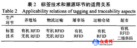 動物食品涉及畜牧養(yǎng)殖、屠宰加工、流通銷售等眾多環(huán)節(jié),其從養(yǎng)殖場到餐桌的整個(gè)生產(chǎn)流程與其他食品相比要復(fù)雜得多,因此追溯的信息涵蓋面更廣、信息量更大、追溯信息間的轉(zhuǎn)換頻率更高。在整個(gè)生產(chǎn)流通環(huán)節(jié)中全部使用電子標(biāo)簽,在中國現(xiàn)有經(jīng)濟(jì)基礎(chǔ)和行業(yè)發(fā)展水平上還不現(xiàn)實(shí)。不同的生產(chǎn)環(huán)節(jié)對標(biāo)簽技術(shù)具有不同的需求,可針對需要進(jìn)行靈活選擇。