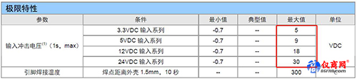 圖1 ZLG電源產(chǎn)品極限特性表