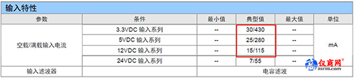圖2 ZLG電源產(chǎn)品輸入特性表