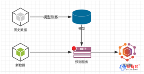 這個(gè)圖就是一個(gè)人工智能服務(wù)的略縮圖。 在歷史數(shù)據(jù)上訓(xùn)練出模型,并發(fā)布一個(gè)預(yù)測(cè)服務(wù),這個(gè)預(yù)測(cè)服務(wù)可能就是一個(gè)http的接口。 然后新的數(shù)據(jù)過(guò)來(lái)以后,根據(jù)模型算出一個(gè)預(yù)測(cè)值。經(jīng)過(guò)剛才的說(shuō)明,我們看到數(shù)據(jù)是人工智能的根本。擁有的數(shù)據(jù)越多,越豐富,越真實(shí),那么訓(xùn)練出的模型效果越好。
