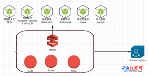 所以我們經(jīng)過(guò)一段時(shí)間的討論和實(shí)驗(yàn),引入了k8s+docker來(lái)完成這個(gè)目標(biāo)。docker的優(yōu)勢(shì)大家應(yīng)該都知道,快速,標(biāo)準(zhǔn)化,隔離性,可遷移性都不錯(cuò)。 通過(guò)鏡像我們可以迅速的將測(cè)試環(huán)境的數(shù)量提升一個(gè)量級(jí),鏡像的版本管理正適合TO B業(yè)務(wù)的多版本管理。 之所以選擇k8s,是因?yàn)閗8s相較于swarm和mesos 都擁有著更強(qiáng)大的功能和更簡(jiǎn)單的部署方式。剛才說(shuō)的預(yù)測(cè)服務(wù)需要部署很多個(gè)agent,使用k8s的話(huà)只需要設(shè)置一下replica set的數(shù)量,k8s就會(huì)自動(dòng)幫我們維護(hù)好這個(gè)數(shù)量的實(shí)例了,很方便 。k8s的調(diào)度機(jī)制能很輕松的滿(mǎn)足我們剛才說(shuō)的對(duì)于災(zāi)難恢復(fù),冗余,多租戶(hù),高可用,負(fù)載均衡,資源管理等要求。所以我們當(dāng)初懷揣著對(duì)google莫名的憧憬走上了k8s的踩坑之旅。