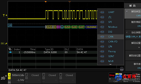 ZDS4054Plus示波器標(biāo)配512M存儲(chǔ)深度,可以充分保證長(zhǎng)時(shí)間捕獲波形的高采樣率。畢竟只有捕獲了正確的波形,才能得到正確的解碼。