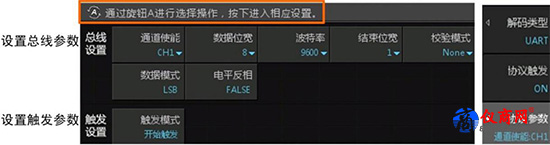 1、選擇正確的協(xié)議類型,并將“觸發(fā)使能”選擇“ON”,信號(hào)將按照協(xié)議的開始位、數(shù)據(jù)位或地址位等進(jìn)行觸發(fā)。