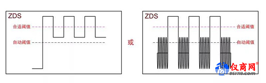 閾值設(shè)置是平時(shí)解碼中最容易忽略的一點(diǎn),示波器對(duì)波形進(jìn)行解碼時(shí),需要有參考的基準(zhǔn)線,示波器對(duì)比波形數(shù)據(jù)相對(duì)于基準(zhǔn)線的值來判斷高低電平,一般示波器默認(rèn)閾值是自動(dòng)閾值,即最大值和最小值之間的中間值來自動(dòng)確認(rèn)的。