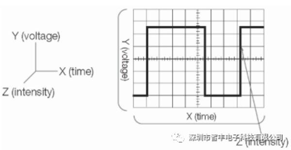顯示器上信號(hào)的強(qiáng)度或亮度有時(shí)稱為Z軸,在數(shù)字螢光示波器(DPO)上,Z軸可以用顯示器的顏色分級(jí)來表示。