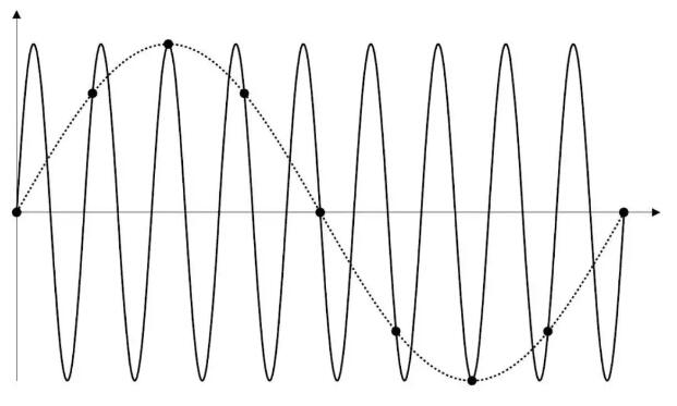 那么究竟要快多少呢?可以參考數(shù)字信號(hào)處理中的奈奎斯特(Nyquist)定律。Nyquist定律說(shuō), 如果被測(cè)信號(hào)帶寬是有限的,那么在對(duì)信號(hào)進(jìn)行采樣和量化時(shí),如果采樣率是被測(cè)信號(hào)帶寬的2倍以上,就可以完全重建或恢復(fù)出信號(hào)中承載的信息而不會(huì)產(chǎn)生混疊。