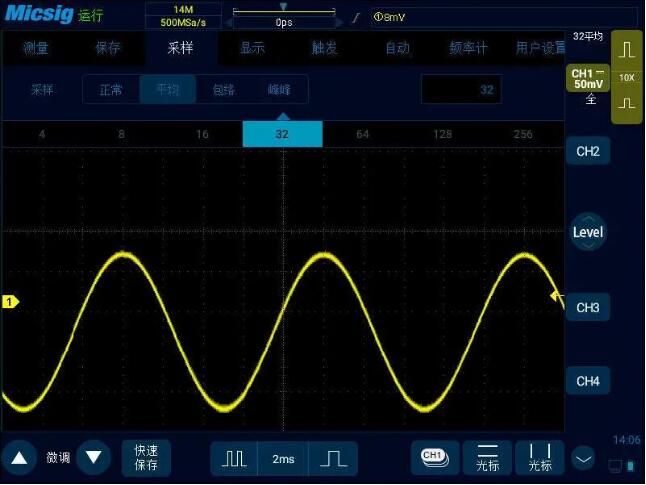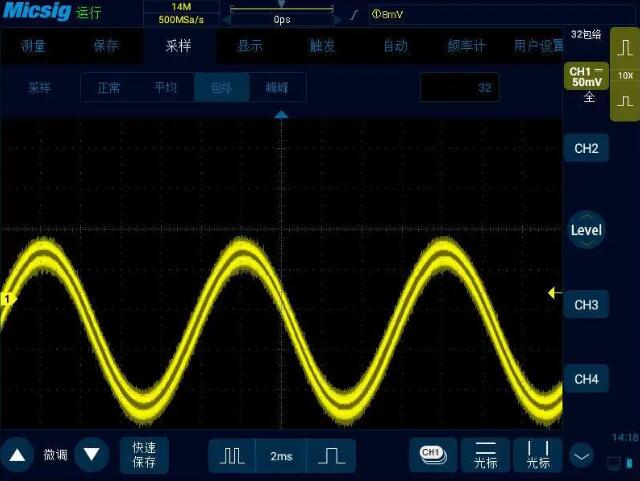大多數(shù)示波器會(huì)提供幾種采樣模式供用戶選擇,常見(jiàn)的有正常采樣、平均采樣、峰值采樣和包絡(luò)采樣。