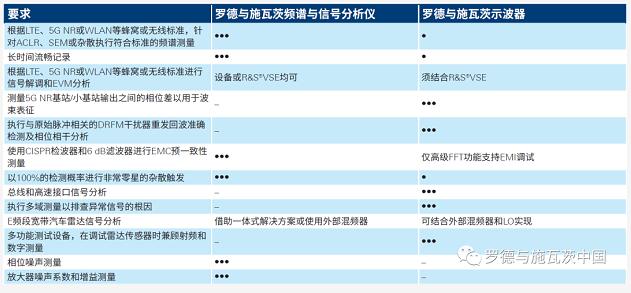 我們分別列出R&S的頻譜分析儀與示波器各自的性能優(yōu)勢