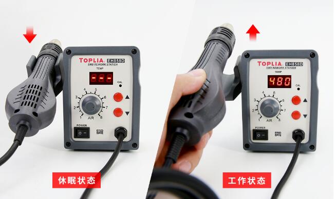 A.手柄放置在支架,即自動(dòng)切斷加熱電流,送冷風(fēng)降溫低于100℃后進(jìn)入待機(jī)狀態(tài);