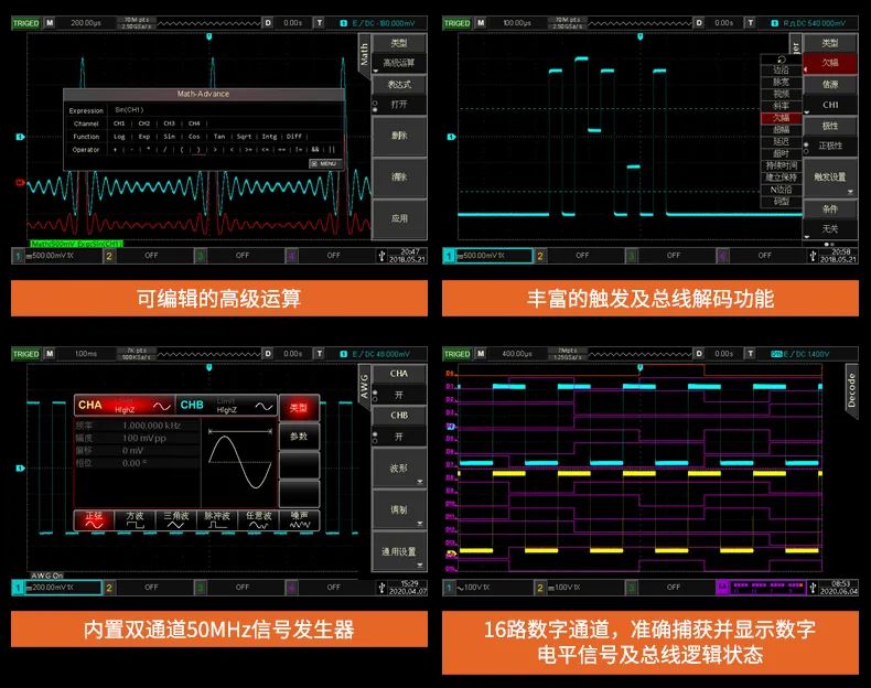 內(nèi)置雙通道等性能,最高50MHz的任意波形發(fā)生器(僅MSO S系列)