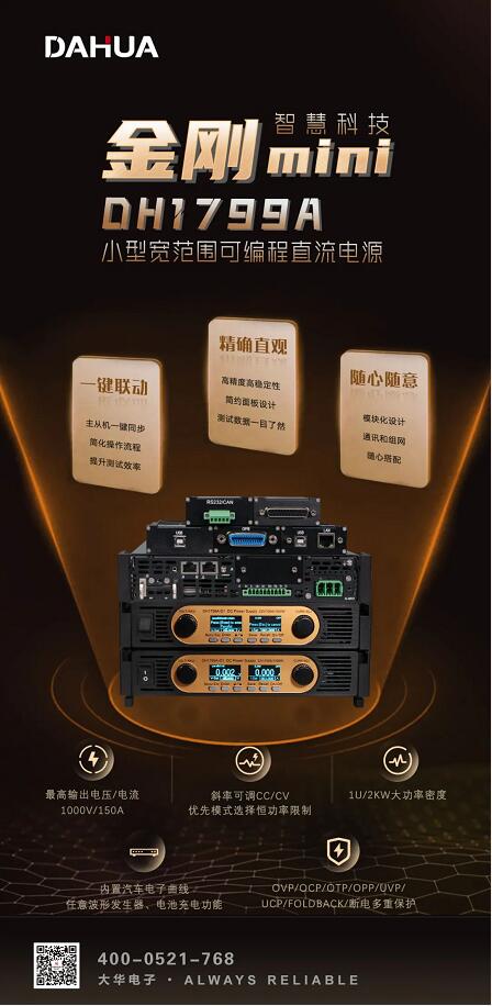 自DH1799系列可編程直流電源問(wèn)世以來(lái),憑借其酷炫的外觀,嬌小的體積,1.5kW的功率密度,獲得了廣大用戶(hù)群體的青睞和一致好評(píng),并親切的將其稱(chēng)之為“黑金剛”。時(shí)至今日,大華電子隆重宣布,我們即將喜添一位新成員!