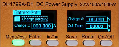 DH1799A系列內(nèi)置了電池充電測(cè)試功能。測(cè)試前設(shè)置好電池四種測(cè)試關(guān)斷條件:關(guān)斷電壓、關(guān)斷電流、關(guān)斷容量和充電時(shí)間,當(dāng)滿(mǎn)足任一條件時(shí),即會(huì)自動(dòng)中斷測(cè)試。測(cè)試過(guò)程中可獲取電池的電壓、充電時(shí)間和已充電容量。