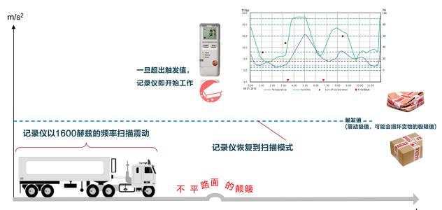 另外,testo 184 G1 記錄儀除了記錄環(huán)境溫濕度之外,還可以實(shí)現(xiàn)運(yùn)輸過程的振動記錄,通過測量三軸加速度來記錄運(yùn)輸全程的沖撞、顛簸等情況,為進(jìn)一步的運(yùn)輸規(guī)劃提供參考依據(jù),也為過程的審計追蹤提供有效的記錄。