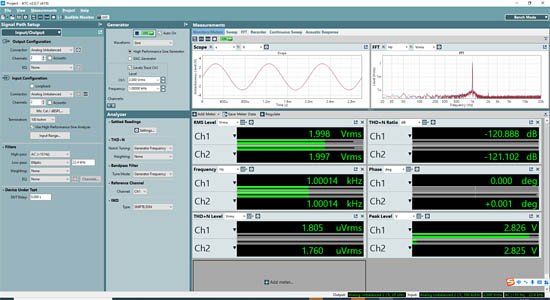 可產(chǎn)生低至0.001Hz,高達(dá)204kHz的正弦信號(hào),低于-120dB的典型殘留THD+N以及超過(guò)1MHz的帶寬,添加120萬(wàn)點(diǎn)的FFT和完整的24位分辨率,優(yōu)于所有其他音頻分析儀。