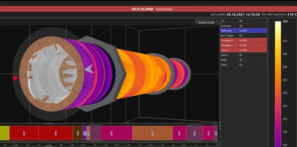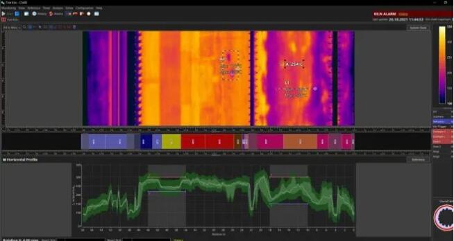 CS400具有特殊設(shè)計的軟件,它依賴于標(biāo)準(zhǔn)的以太網(wǎng)和/或COM端口。由于圖形用戶界面是專門為窯爐應(yīng)用場景所設(shè)計的,因此不需要過多的現(xiàn)場培訓(xùn),操作人員即可輕松設(shè)置和使用該軟件。一經(jīng)安裝完畢,該軟件就可以提供整個窯殼表面的熱成像圖像,并可以對局部進(jìn)行縮放,從而對關(guān)鍵區(qū)域進(jìn)行詳細(xì)檢查。溫度范圍和區(qū)域報警也可以很容易地在軟件內(nèi)進(jìn)行配置,其他如燃燒區(qū)溫度、旋轉(zhuǎn)周期和掃描儀的內(nèi)部溫度信息等,都可以在狀態(tài)欄中進(jìn)行顯示,無需切換畫面即可獲知完整的系統(tǒng)運行狀態(tài)信息。