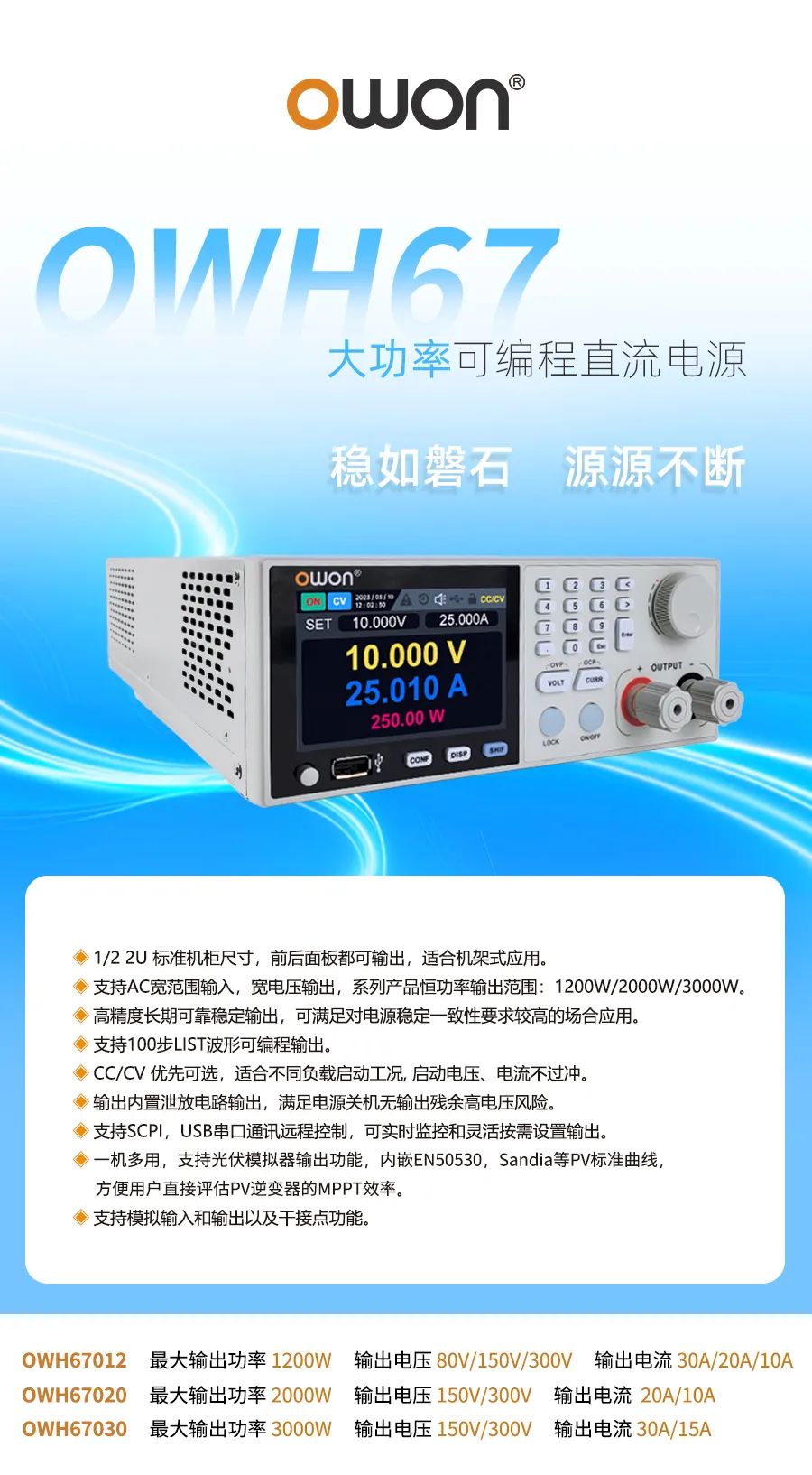 福建利利普光電科技有限公司(以下簡稱利利普owon)最新推出OWH67系列大功率可編程直流電源。這款電源的問世不僅標志著公司在電源技術(shù)領(lǐng)域的新突破,也預(yù)示著對工業(yè)級電源市場的深入拓展。