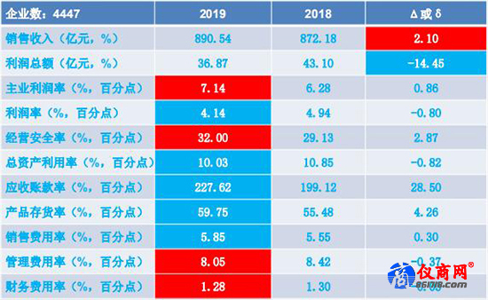 實現(xiàn)主營業(yè)務收入890.54億元,同比增長2.10%、比上年下降7.28個百分點。凈增18.36億元,比上年的95.57億元減少80.79%。企業(yè)主營業(yè)務收入平均規(guī)模2003萬元,同比增加41萬元。