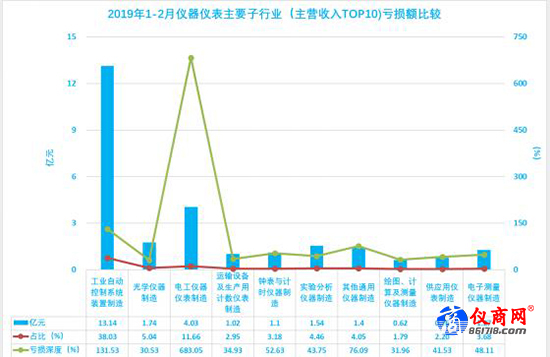 1.19 2019年1-2月儀器儀表主要子行業(yè)(主營收入TOP10)虧損額比較