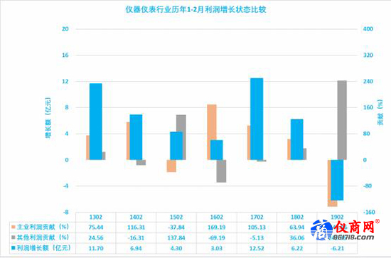 1.3儀器儀表行業(yè)2019年1-2月主業(yè)利潤波動分析
