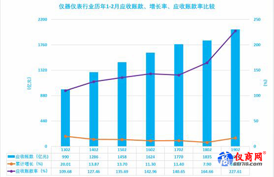 2.9儀器儀表行業(yè)歷年1-2月應收賬款、增長率、應收賬款率比較