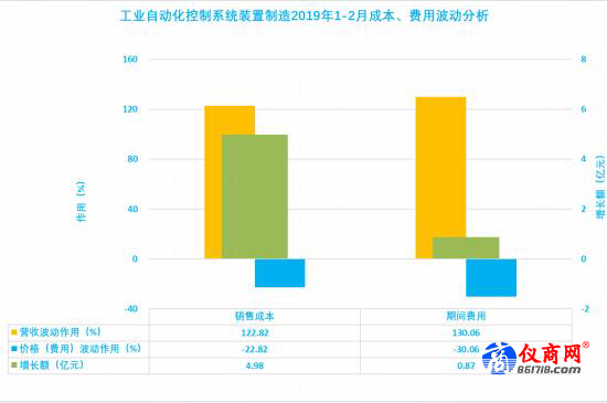3.1.4工業(yè)自動化控制系統(tǒng)裝置制造2019年1-2月成本、費用波動分析
