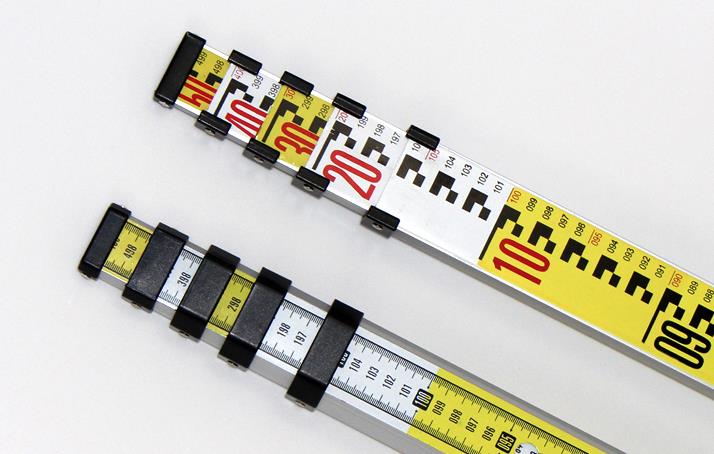 標尺又稱塔尺,通常情況下有正反面兩種讀數(shù),一面為精確讀數(shù),刻度精確到毫米,直接讀出就行,一般在距離比較近的狀態(tài)下使用!另