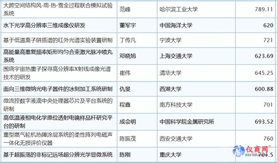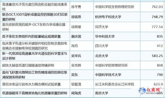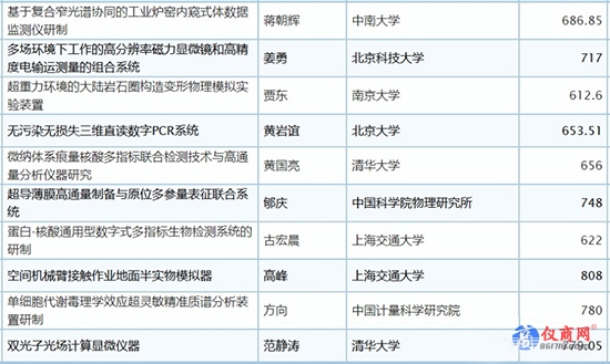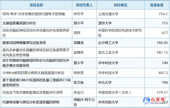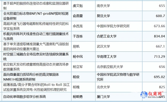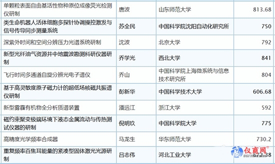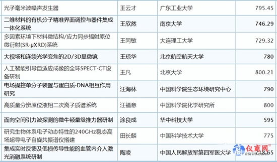 其中,82項國家重大科研儀器研制項目(自由申請) 共計投資5.8億元,單項最高841萬元,最低412萬元。