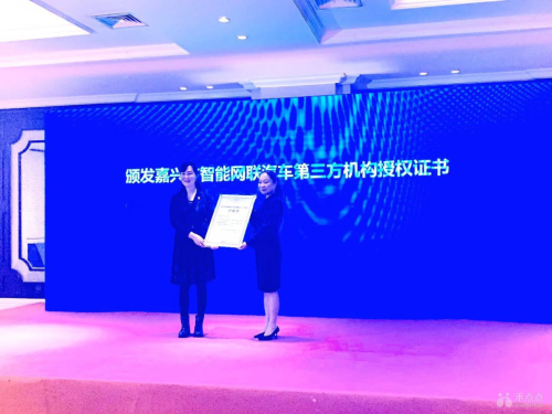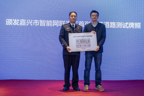 會上,由嘉興市公安局向寧波吉利汽車研究開發(fā)有限公司頒發(fā)了嘉興市第一張智能網(wǎng)聯(lián)汽車開放道路測試牌照。