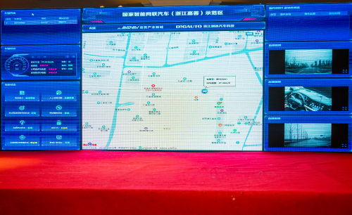 會議最后,嘉興市經(jīng)信局、嘉興市公安局、嘉興市交通運輸局、嘉興市建設局、嘉善縣人民政府領導共同啟動了我市智能網(wǎng)聯(lián)汽車道路測試,并現(xiàn)場連線嘉善智能網(wǎng)聯(lián)汽車測試場,觀看測試畫面。