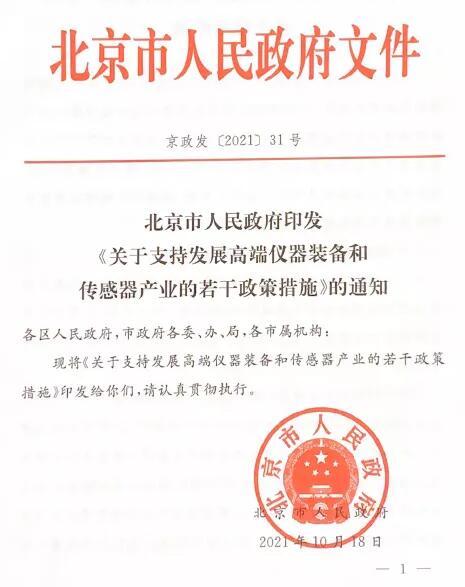 近日,北京市人民政府印發(fā)《關(guān)于支持發(fā)展高端儀器裝備和傳感器產(chǎn)業(yè)的若干政策措施》的通知。