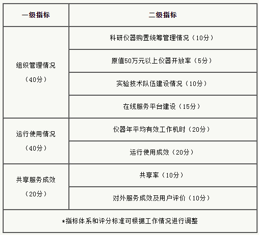 (國家重大科研基礎(chǔ)設(shè)施和大型科研儀器開放共享評(píng)價(jià)考核實(shí)施細(xì)則指標(biāo)表)